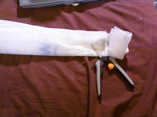 Cut the bottom off. Put that in your bag to make kitty toys with.